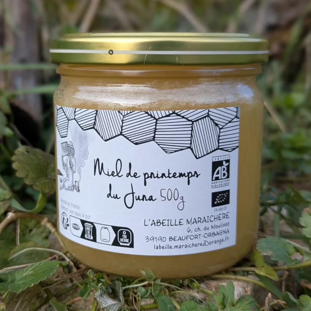 Nous produisons des miels biologiques, récoltés à maturité, issus d’une apiculture paysanne respectueuse des abeilles et de leur environnement, au cœur du Sud Revermont et du Jura. Nos miels sont proposés en format 250 grammes, 500 grammes et 1kilo.
