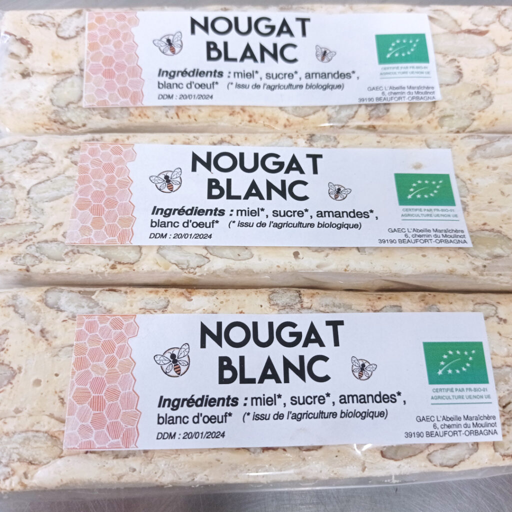 Élaboré artisanalement à partir de notre propre miel biologique, ce nougat blanc aux amandes bio offre une texture tendre et fondante. Riche en amandes soigneusement sélectionnées, il révèle un équilibre subtil entre douceur du miel et croquant du fruit sec, pour un nougat authentique et généreux. Issu du miel récolté sur notre ferme, ce nougat blanc proposé en barre de 100 grammes incarne le lien direct entre nos abeilles et nos produits transformés.